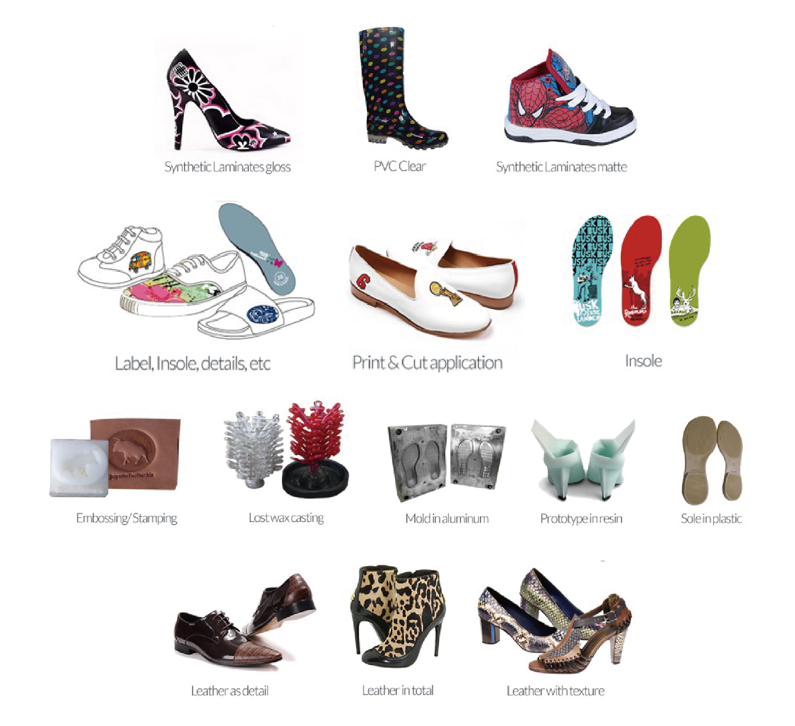 定制或加工鞋帮特效有多种方法,可采用多种不同类型的墨水技术。 ※门店或基于事件的营销活动,欧博代理可采用小型桌面式喷切一体设备; ※批量定制可考虑与大型生产设备上的可变数据相结合; ※墨水可选择颜料,热升华或UV,弱溶剂,欧博官网甚至可选择是否需要纹理,或选择特殊墨水诸如荧光墨等; ※图像可直接应用或打印到产品上,甚至还可利用激光烫印机来呈现金属效果。