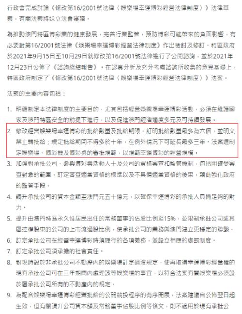 拥有3家主牌照之一的澳门赌场银河娱乐公布年报显示,欧博去年业绩扭亏为盈。消息公布后,午盘一度上涨超过4%,收涨3.04%。 年报显示 ,银河娱乐集团全年营收为197亿港元,同比上升53%。全年集团股东净利为13亿港元,对比2020年为亏损40亿港元。 集团表示 ,2022年4月29日派发一次特别股息,每股0.30港元,皇冠显示其对澳门的信心、自身财务以及未来的盈利能力。 目前,银河娱乐正在进行拓展提升,公司称随着位于路氹的项目新里程落成后,第三及四期将合共提供约3,000间适合高端和家庭旅客的客房及别墅、40万平方呎的会议展览空间、50万平方呎并设有16,000个座位的多用途场馆、餐饮、零售以及娱乐场等。 银河娱乐表示,将继续推进横琴的计划并扩大在横琴及澳门以外的拓展,重点包括在内地的机遇,特别是快速发展中的大湾区。 访澳内地游客增加5成 酒店入住率近5成 银河娱乐业绩复苏的一大背景是,DG游戏澳门疫情管控得力,2021年赴澳游客较前一年好转。 银河娱乐称,最近农历新年假期的业务表现,访客受到旅游限制而少于预期,但在高端中场带动下博彩收益表现稳健,酒店入住率有所上升,商场销售理想,欧博注册这都是对澳门旅游休闲潜在需求的证明。 银河娱乐指出,旗下5间酒店2021年平均入住率47%。 澳门整体看,不管是游客和博彩都出现了一定程度的复苏。2021年,访澳旅客人次为770万,数字较2019年仍然低80%,但较2020年上升 31%。其中,内地旅客人次为700万,欧博代理较2020年上升48%。同时,单日访澳游客开始出现增加,从2021年1月,访客数每日约18,000人次,到2021年12月份,访客数已上升至每日约26,000 人次。 另据澳门博监局报告,2021年澳门全年博彩收益总额为843亿元,较2020年上升44%。2021年第四季度博彩收益总额为185亿元,同比下跌13%,环比上升2%。 政策因素逐渐明朗 已暂停贵宾厅运营 各大赌场持有的博彩牌照于今年到期,相关政策已开始明朗。 2022年1月,澳门立法会首读通过《娱乐场幸运博彩经营法律制度》,草案表示,博彩牌照批给数量最多为六个并明文禁止转批给,经营期限一般不得多于10年,在例外情况下可延长最多三年。 去年9月,自从澳门政府宣布重订博彩制度以来,市场一直对政策动向十分关注,如今政策出台后已经明确了6大牌照,经营期限限较之前缩半,并调升承批公司的资本金额至五十亿澳元,以确保承批人具备足够的财力。 市场一般认为,“三正三副”的局面可能变为“六正”,制度出台后持牌赌场纷纷上涨。 据了解,现时澳门六大赌场营运商实际是“三正三副”,正牌牌照分别由澳博控股、永利澳门以及银河娱乐持有,这三家正牌牌主各自转批给美高梅中国、新濠及金沙中国三个副牌牌主。六大赌牌将于今年6月到期。 此外,银河娱乐表示,于2021年第四季度,鉴于规管环境的广泛调整,已暂停了贵宾厅的营运并会继续监察其情况。 去年年末,澳门“赌厅之王”周焯华被捕,其所在澳门最大博彩中介太阳城所经营的贵宾厅业务被关闭。 据了解 ,贵宾厅这种运营模式由澳门独创,采用包间形式,把拉客赌博业务承包给不同中介集团。中介手下不少所谓“叠码仔”通过拉拢赌客来贵宾室赌钱生财。“叠码仔”在内地尤其江浙一带活跃,不少好赌的内地新贵迷失其中。