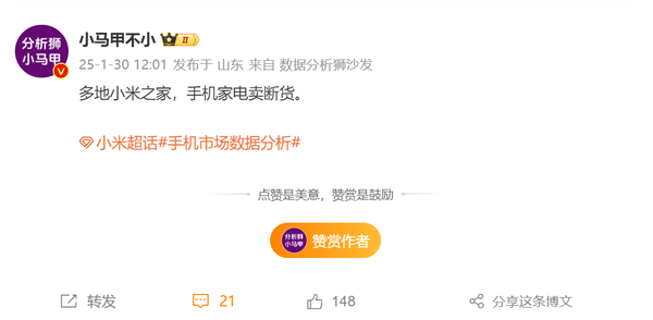 供不应求?博主称多地小米之家手机家电卖断货 【CNMO科技消息】近日,DG游戏CNMO了解到,据一位博主透露,多地小米之家出现了手机及家电产品热销至断货的情况。在相关评论区,欧博注册有网友回应称,自己所在地的电视产品确实已经售罄。 实际上,小米在IoT业务领域的强劲表现,欧博代理在2024年三季度的财报中就已经有所体现。该季度,小米IoT业务的毛利率达到了20.8%,甚至超过了汽车业务,欧博官网使其在家电领域成为了不容忽视的实力派玩家。从具体数据来看,今年三季度,小米空调的出货量超过了170万台,欧博娱乐同比增长超过55%;洗衣机出货量超过480万台,同比增速也超过了50%;冰箱出货量则超过了81万台,同比增速达到20%以上。 作为智能家居的核心,“小爱同学”的月活跃用户数已经达到了1.35亿。以空调为例,尽管市场仍由格力、美的等传统巨头主导,但小米正紧追不舍,对这些龙头品牌构成了不小的威胁。尽管格力、美的在关键零部件和工艺流程上仍具有壁垒,但家电智能化已成为当前的趋势。在这方面,小米与传统巨头站在了同一起跑线上,甚至在某些方面略占优势,如智能控温、人机交互设计以及App远程操控等。 此外,根据Canalys的最新数据,小米手机在2024年第四季度全球市场上的出货量份额达到了13%,稳居行业前三名,仅次于三星和苹果。小米集团董事长兼CEO雷军对此表示了高度认可,并转发了相关数据。 (责任编辑:) |