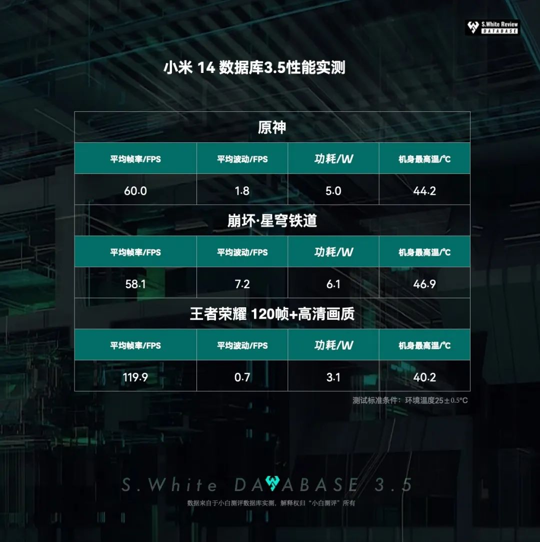 本周小米发布了小米14系列,欧博我们也对小米14系列的续航、充电、性能等进行了测试,本篇汇总「小米14」部分图文版数据,供大家查阅。实测小米14游戏表现:《星穹铁道》数据库3.5测试平均帧率58.1 FPS,功耗6.1W,皇冠机身最高温度46.9℃;《原神》数据库3.5测试平均帧率60 FPS,功耗...