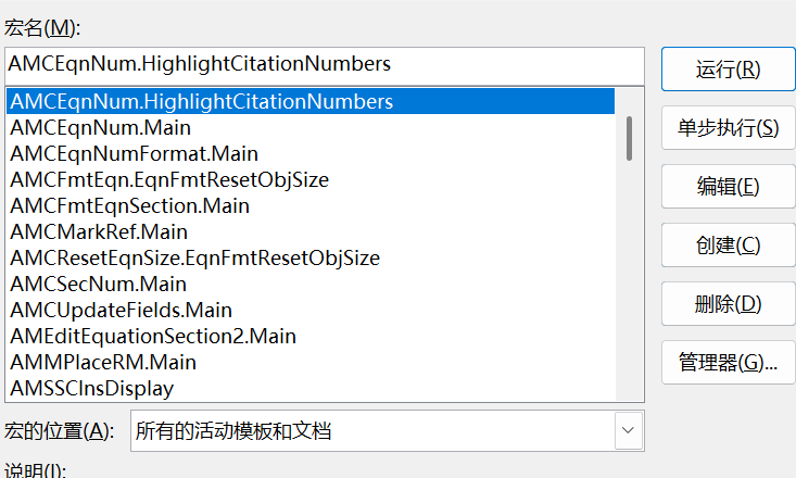 这个HighlightCitationNumbers就是我们新建的宏文件,运行就可以达到期望的效果