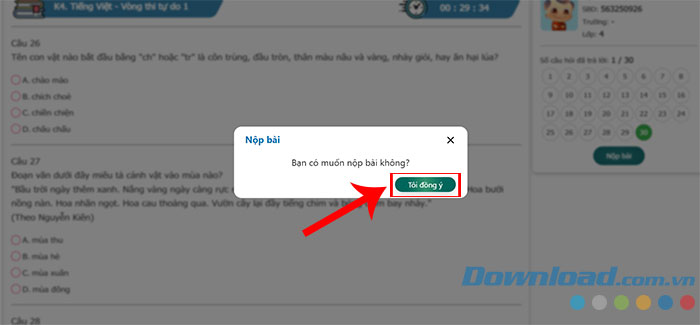 Bước 6: Ấn nút Tôi đồng ý để xác nhận nộp bài.